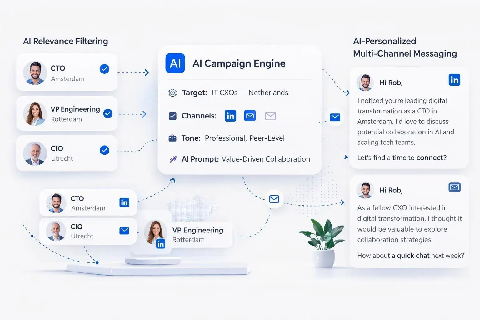 with AI-assisted outreach workflows designed for authentic, scalable engagement