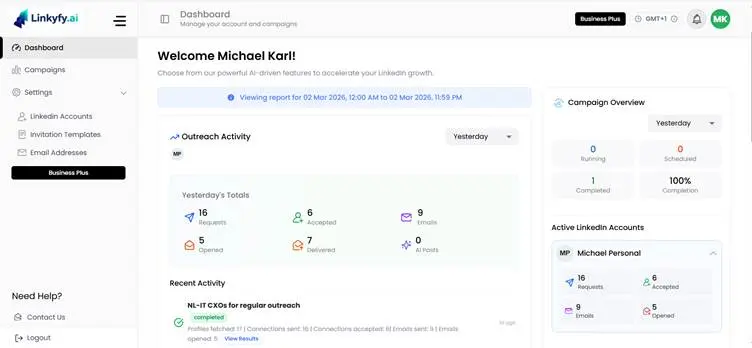 You acknowledge and agree that you are solely responsible for all activity conducted through your LinkedIn account while using the Linkyfy platform, including but not limited to any warnings, restrictions, suspensions, or permanent bans imposed by LinkedIn. Linkyfy provides a software platform as a tool — it does not control, direct, or manage how you choose to use that tool on your LinkedIn account.